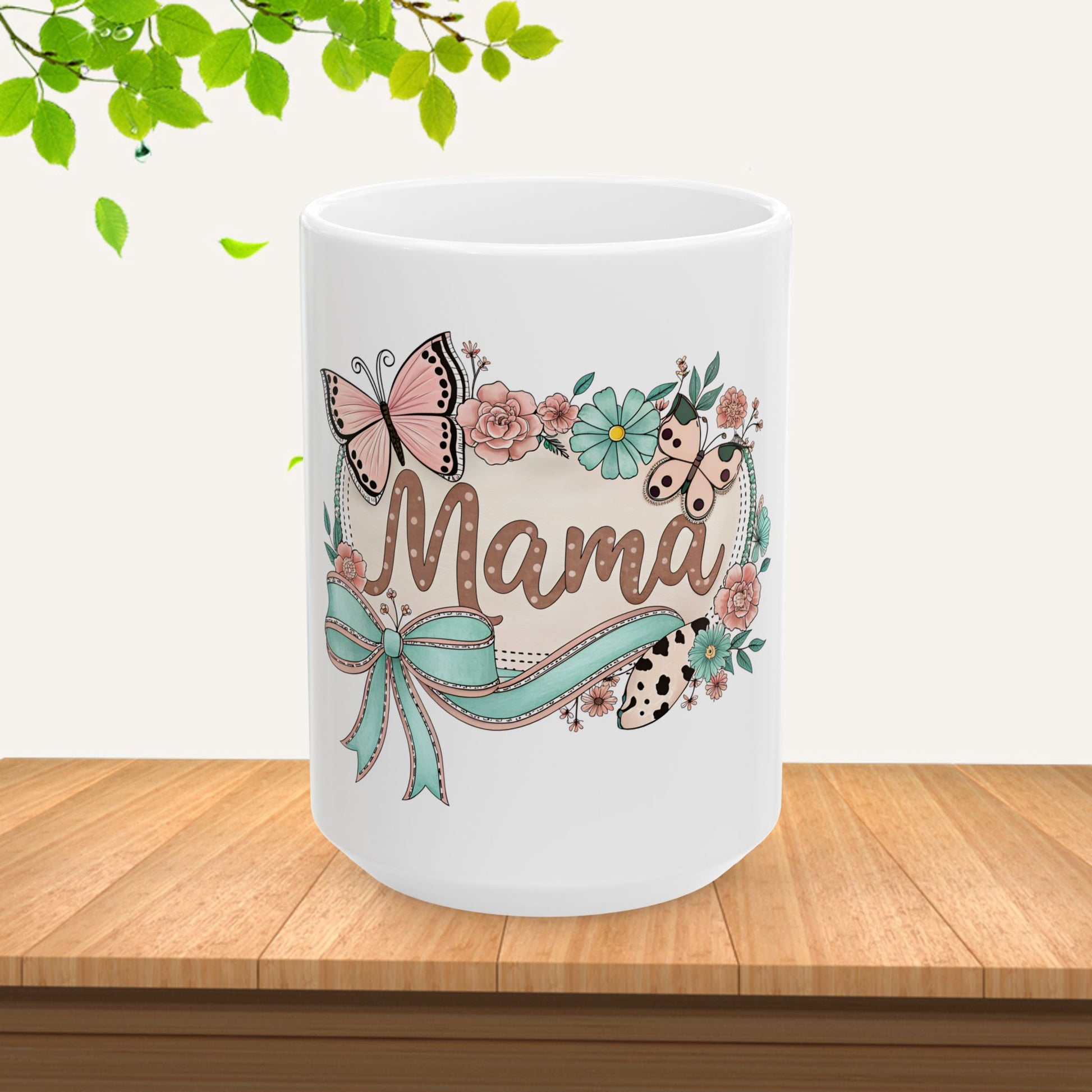 Floral Butterfly Mug for Mama - 11oz & 15oz Ceramic Coffee Cup
