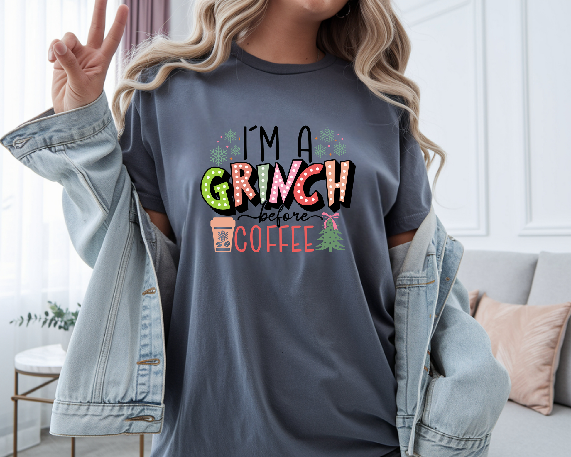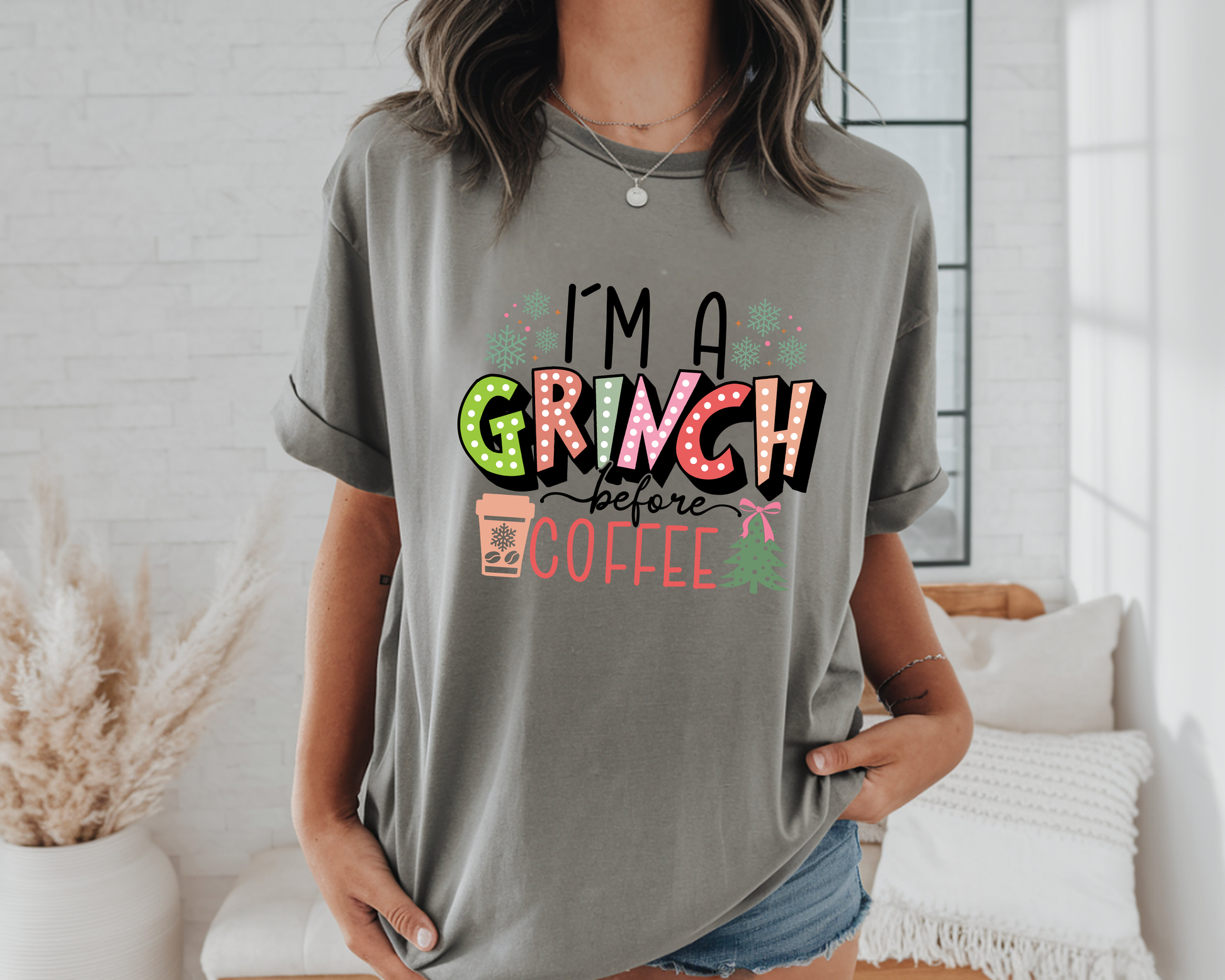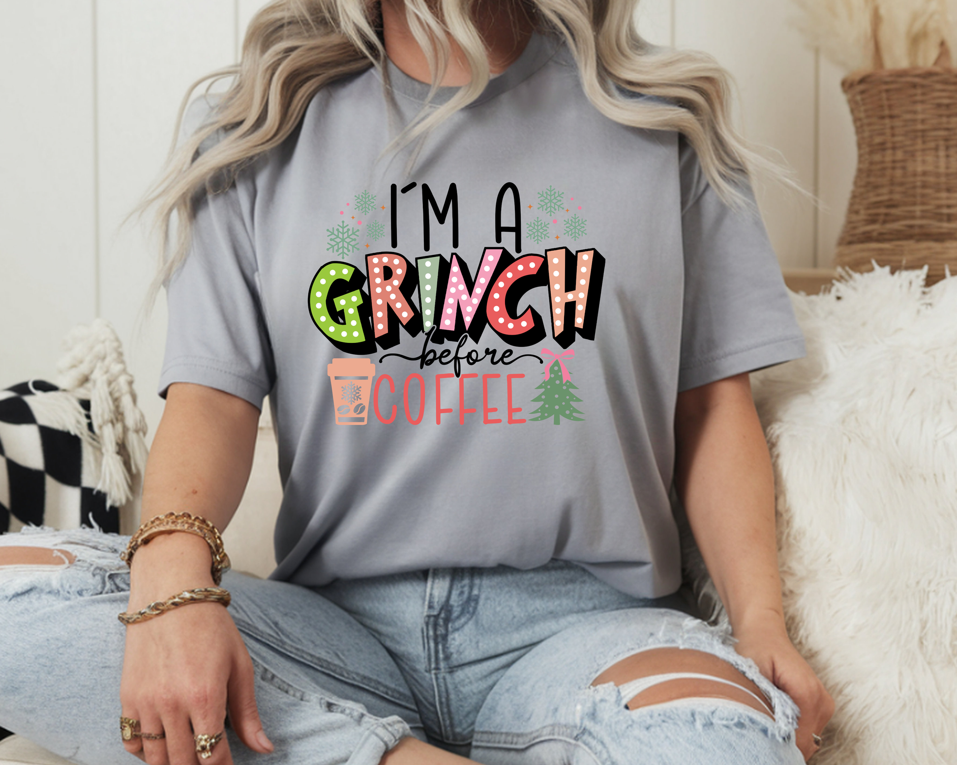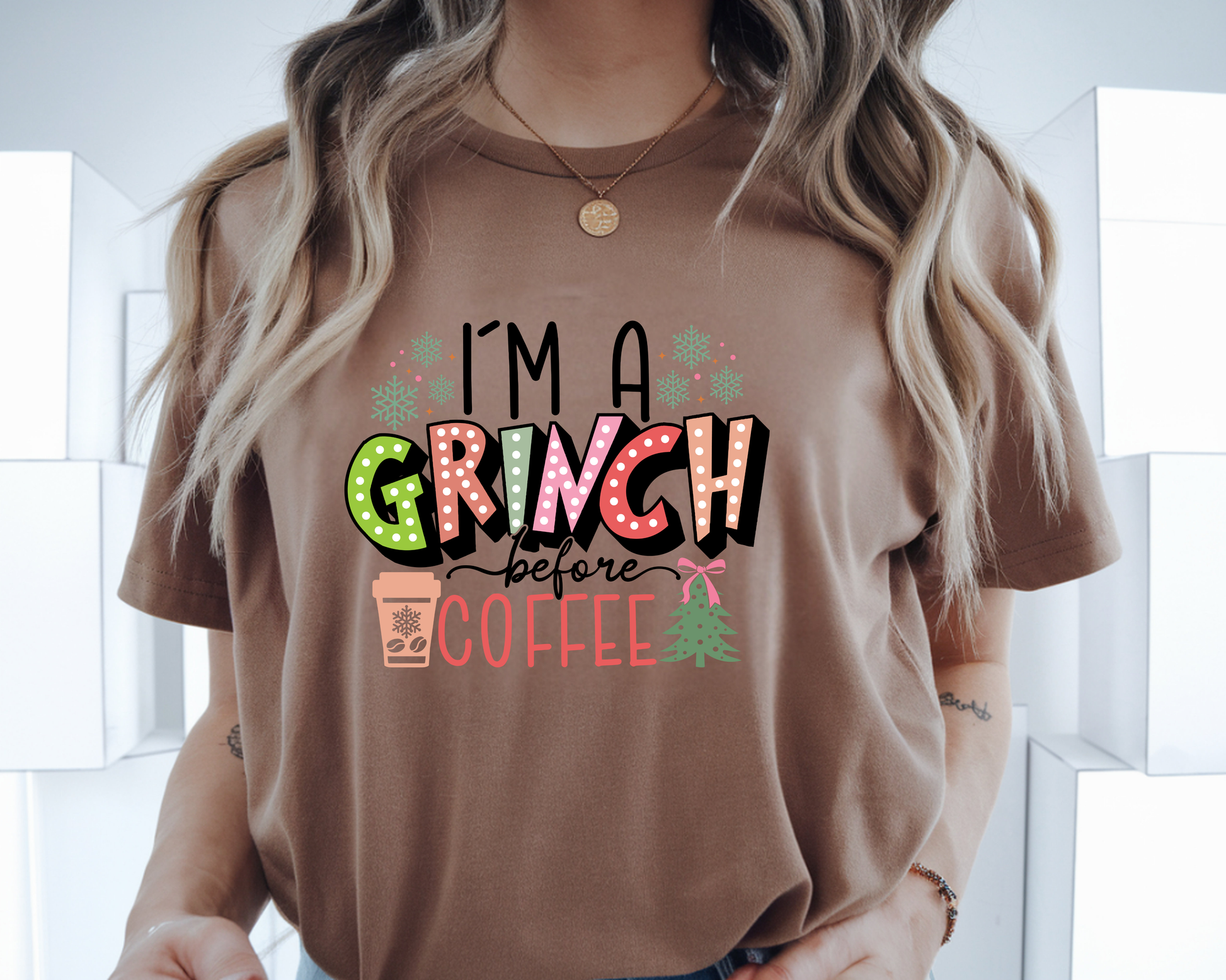 Bring some fun to the holidays with our “I’m a Grinch Before Coffee” Christmas T-Shirt!