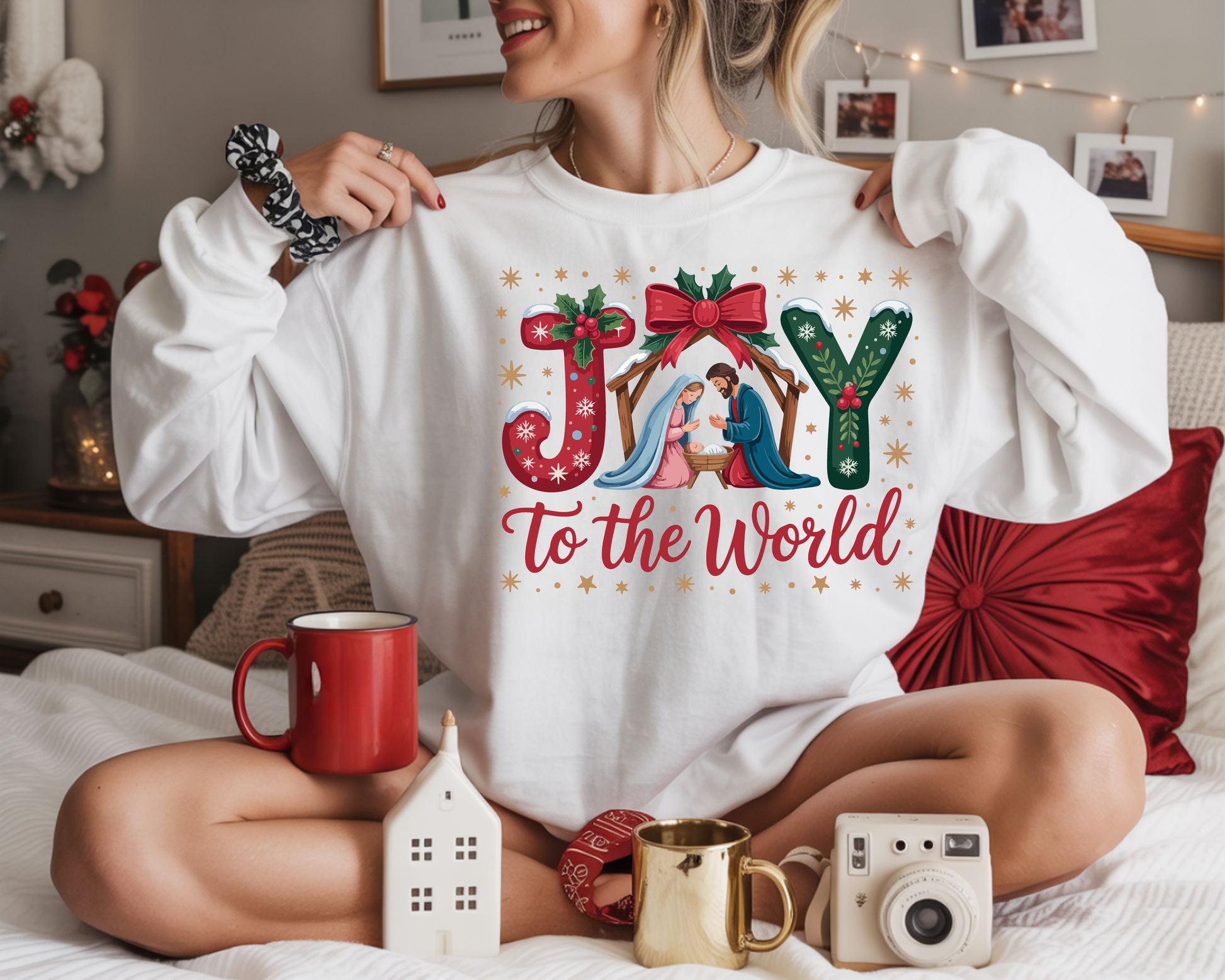 Cozy up in our “Joy To The World” Christmas Sweatshirt — soft, warm, and perfect for the holiday season. Features a unisex fit, high-quality DTF print, and a fleece interior that keeps you comfy at parties, school events, or festive family moments.