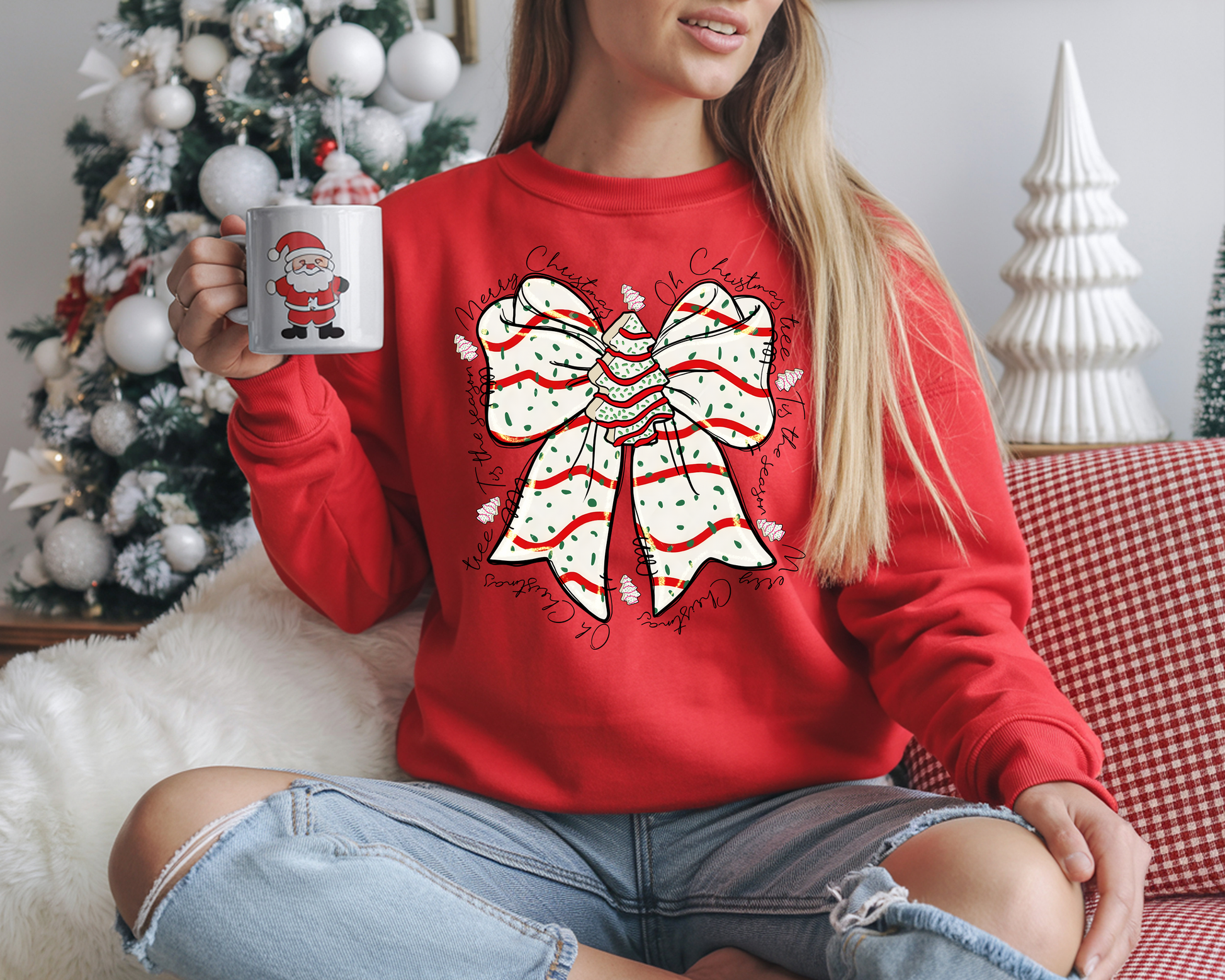 Tis The Season Bow Ribbon Christmas Sweatshirt – Premium Gildan | DTF Printed